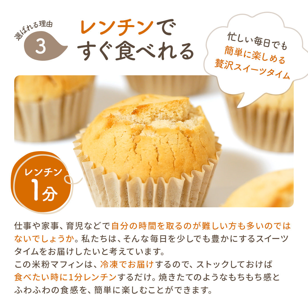 この米粉マフィン (米粉パン)は、冷凍でお届けするので、ストックしておけば食べたい時に1分レンチンするだけ。焼きたてのようなもちもち感とふわふわの食感を、簡単に楽しむことができます。